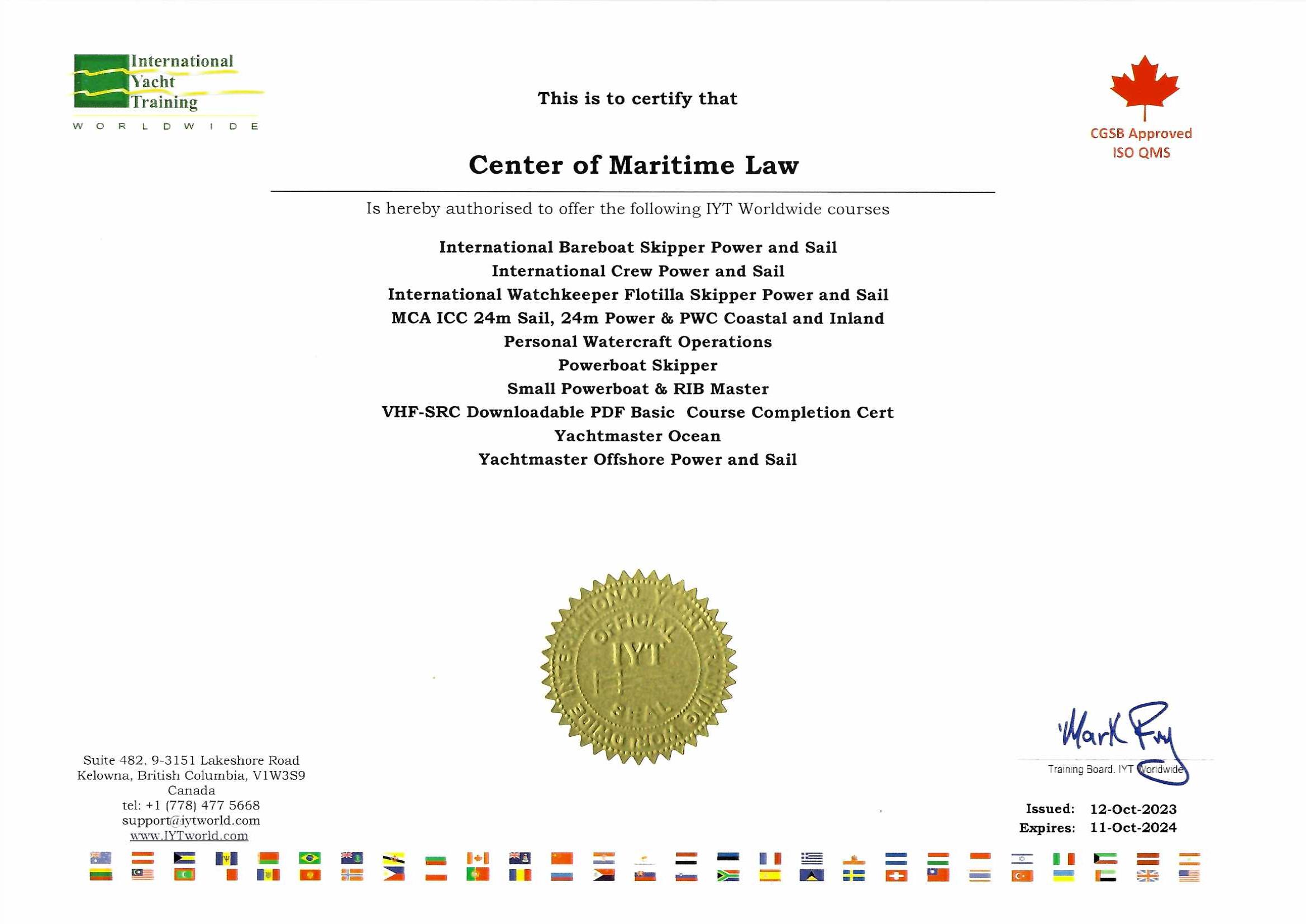 Гуцуляк Владимир Васильевич, руководитель Центра морского права. Кандидат юридических наук в области морского права, капитан-инструктор. В 2014 г. успешно защитил кандидатскую диссертацию по международному морскому праву. Ведет теоретические и практические занятия на курсах ГИМС и IYT. Прошел повышение квалификации в 2019 № удостоверения 180001853124. Общий стаж работы 12 лет, стаж работы по специальности 8 лет.